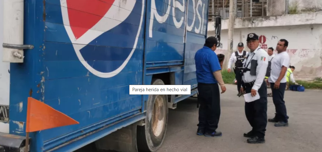 El conductor de un camión refresquero causó un accidente en la colonia Vicente Guerrero de Campeche al no medir su distancia y cerrar el paso a una pareja en moto. La pareja resultó lesionada y fue atendida por paramédicos del Sector Salud.