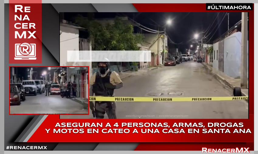 San Francisco de Campeche .- Al menos cuatro personas, armas de fuego, drogas y motocicletas, fueron aseguradas la noche de ayer este martes en cateo que realizó personal de la Fiscalía del Estado de Campeche, como parte de la búsqueda del grupo delictivo relacionado con ejecuciones y disparos en la ciudad capital.