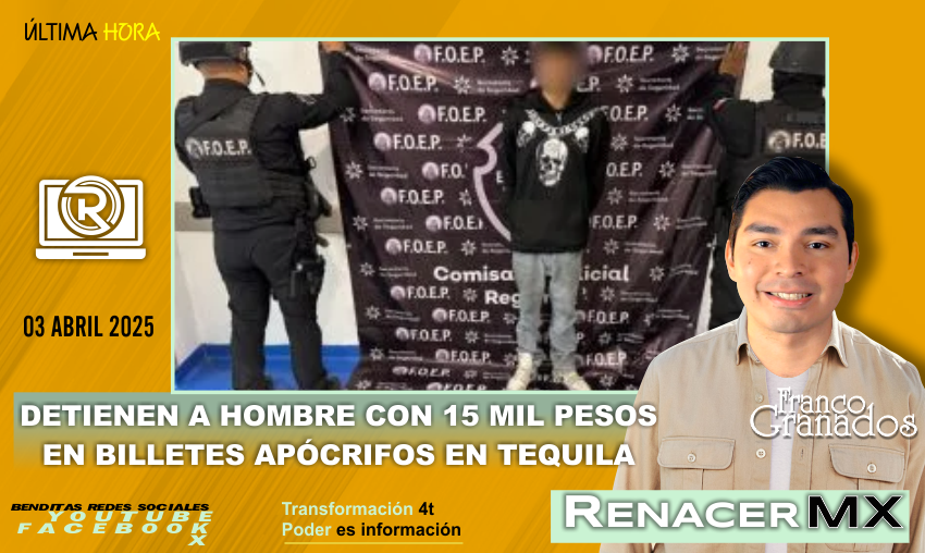 Elementos de la Policía Regional de la Secretaría de Seguridad de Jalisco detuvieron a un hombre que intentaba pagar con un billete falso de 500 pesos en una gasolinera en el municipio de Tequila y le aseguraron 15 mil pesos más, también apócrifos.