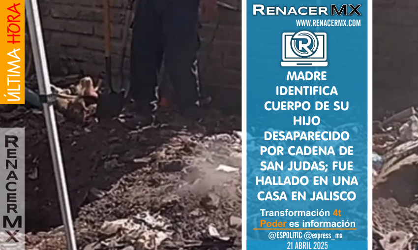 Madre identifica a su hijo desaparecido por una cadena de San Judas y diversas prendas de ropa en un hallazgo en Jalisco.