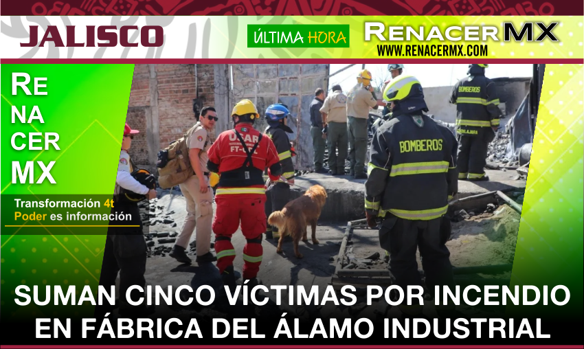 Este miércoles la Fiscalía de Jalisco dio a conocer que suman ya cinco las personas fallecidas por el incendio que ocurrió el pasado 30 de abril en una fábrica de aerosoles de la colonia Álamo Industrial.