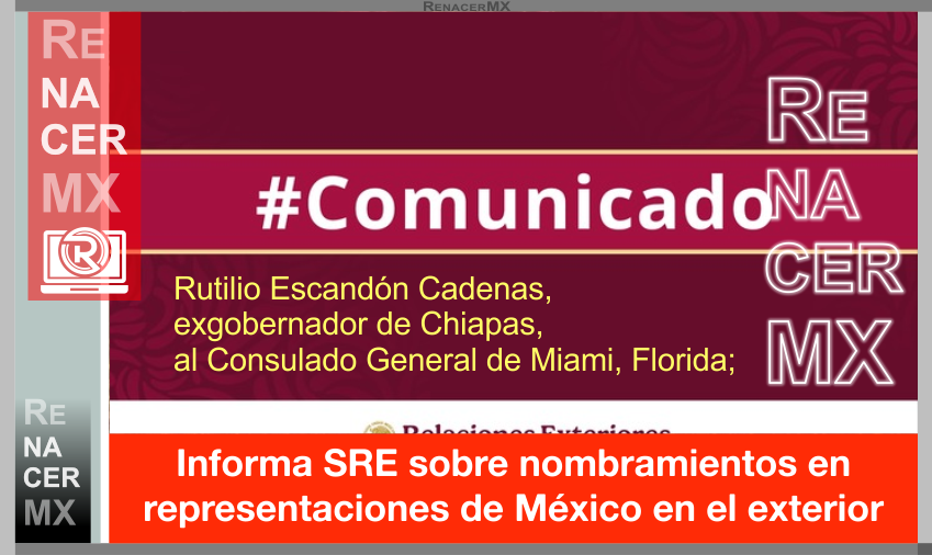 - Rutilio Escandón Cadenas, exgobernador de Chiapas, al Consulado General de Miami, Florida;