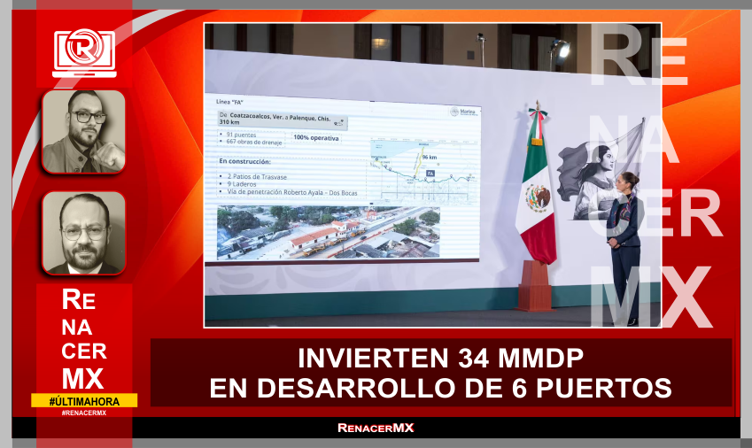 A partir del 2025, el Gobierno federal iniciará obras con inversiones conjuntas superiores a 34 mil millones de pesos (mdp) para el desarrollo en seis puertos del país, con lo cual se espera incrementar la captación de recursos por medio