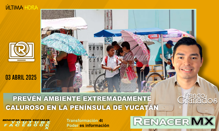 El Centro Hidrometeorológico Regional “Mérida”, del Servicio Meteorológico Nacional, dio a conocer su informe sobre el pronóstico meteorológico, válido de las 06:00 horas del jueves 3 a las 06:00 horas del viernes 4 de abril de 2025.