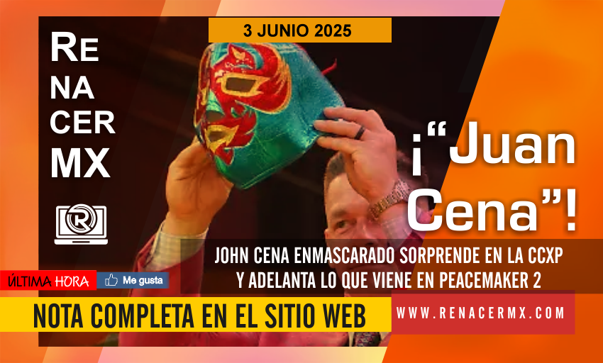 El actor y exluchador John Cena encendió el escenario de la CCXP México 2025 con una aparición inolvidable que combinó acción, carisma y cultura mexicana. Con máscara de lucha libre incluida, Cena se presentó como “Juan Cena” durante el panel de Peacemaker, robándose el show ante miles de fans reunidos en el último día del evento.