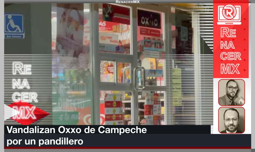 Un pandillero bajo los influjos de alguna sustancia causó destrozos a la puerta de un Oxxo en Campeche.