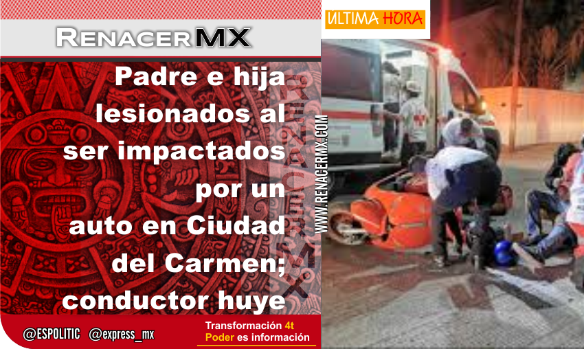 Un hombre y su hija resultaron lesionados la noche del viernes tras un accidente de tránsito mientras circulaban en su motocicleta particular, de color rojo y con placas del estado de Campeche, por calles de la colonia San Agustín del Palmar.