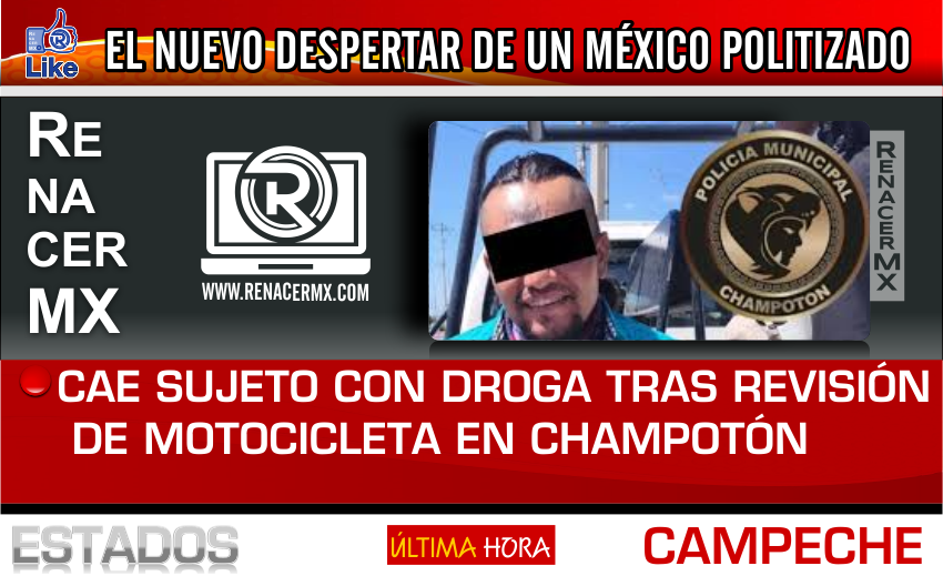 Un hombre fue detenido en Champotón tras ser sorprendido en una motocicleta sin placas y portar presunta droga, lo que activó su aseguramiento por parte de la policía municipal.