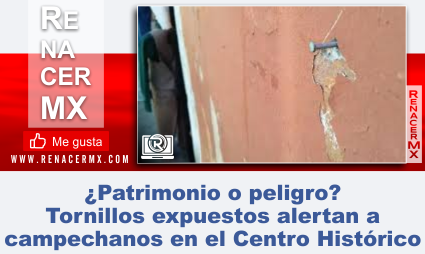 Un ciudadano denunció en redes sociales la presencia de tornillos y clavos expuestos en muros de locales del Centro Histórico de Campeche, lo que representa un riesgo para los peatones, especialmente niños.