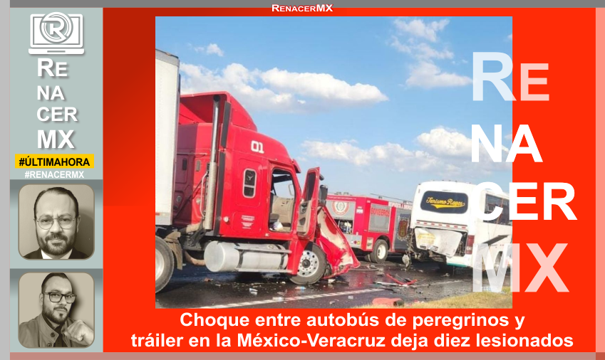 Calpulalpan, Tlax., 9 de diciembre de 2024. Un accidente entre un tráiler y un autobús que transportaba peregrinos dejó un saldo de diez personas lesionadas la tarde de este lunes sobre la carretera federal México-Veracruz,