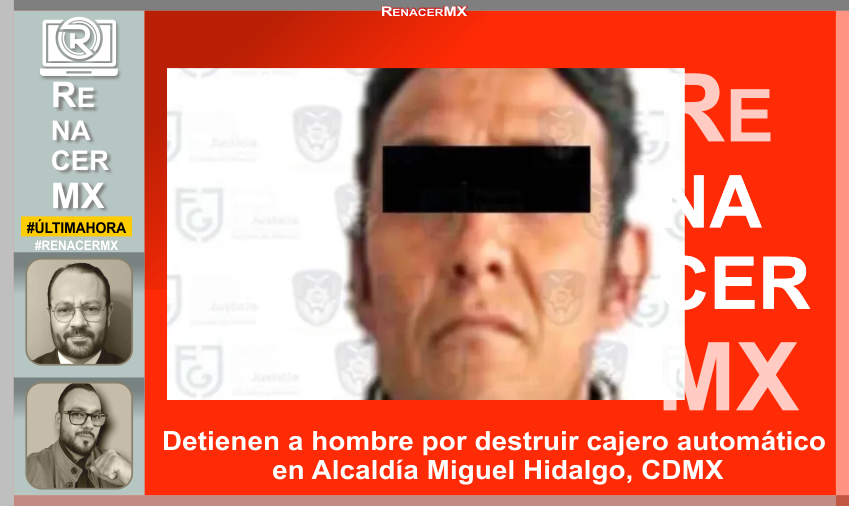 Detienen a hombre en la CDMX. Un sujeto fue detenido por la policía por el delito de daño a la propiedad tras destrozar un cajero automático en la Alcaldía Miguel Hidalgo.