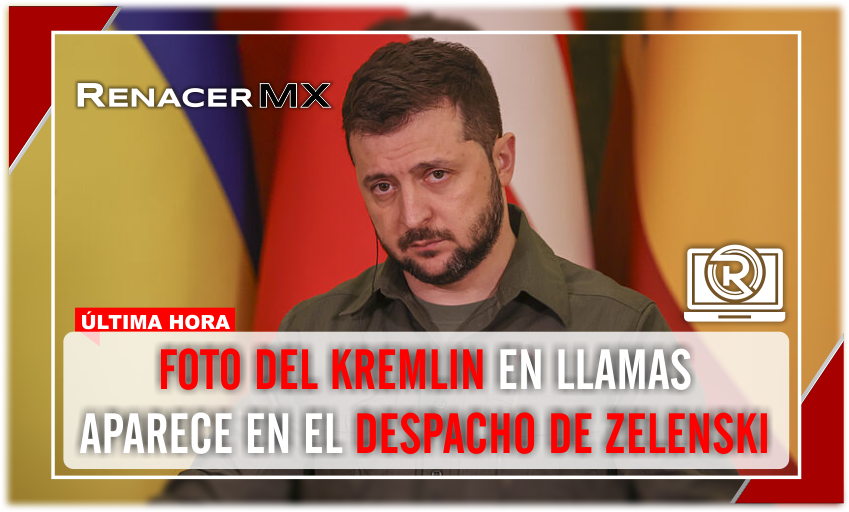 El despacho del presidente de Ucrania, Volodímir Zelenski, ha causado revuelo tras la publicación de una fotografía en la que se observa el Kremlin en llamas, colgada en una de sus paredes.