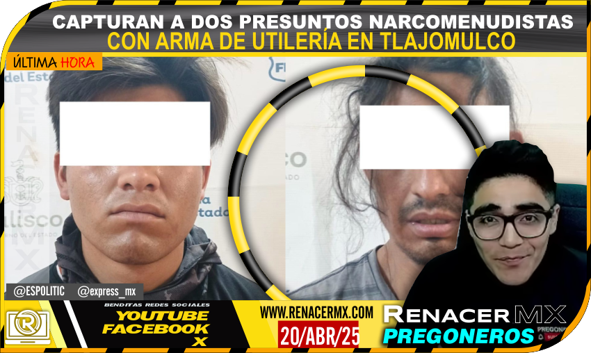 Elementos de la Policía Metropolitana (Metropol) detuvieron a dos hombres en posesión de varias bolsas con presunta marihuana y un arma de utilería, durante un recorrido de vigilancia en la Colonia Chulavista, en el municipio de Tlajomulco de Zúñiga.