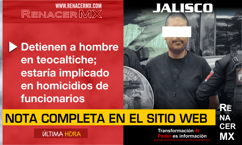 De acuerdo con informes preliminares, el hombre estaría identificado como el presunto responsable del homicidio del secretario general de Gobierno de Teocaltiche, José Luis Pereida Robles, ocurrido el pasado 28 de abril en la zona Centro del municipio.
