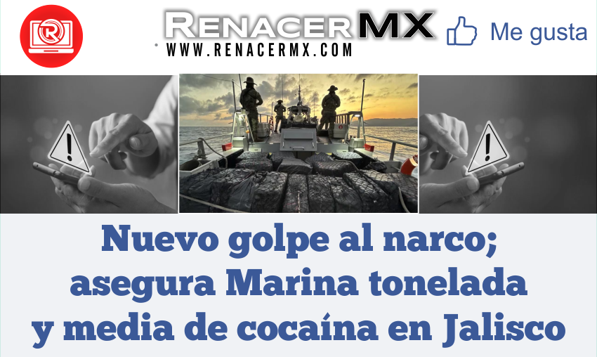 Elementos de la Secretaría de Marina (Semar) aseguraron e impidieron el traslado de tonelada y media de presunta cocaína frente a las costas de Jalisco.