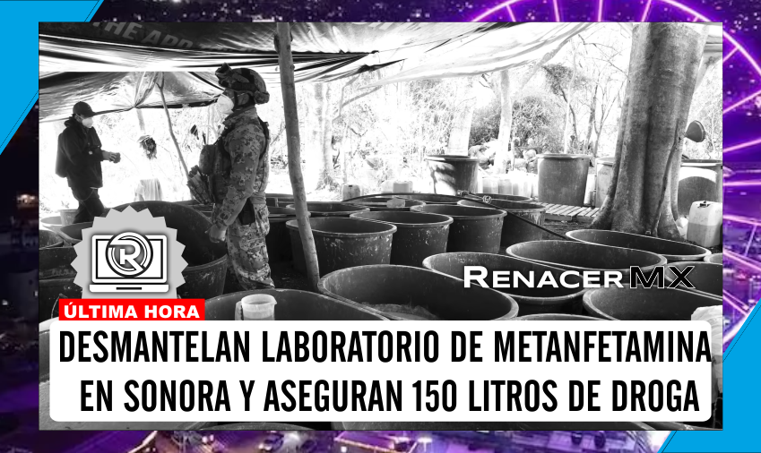 En un operativo conjunto, la Secretaría de Marina (SEMAR), la Guardia Nacional (GN) y la Fiscalía General de la República (FGR) desmantelaron un laboratorio clandestino en Sonora, donde se encontraron aproximadamente 150 litros de metanfetamina líquida ocultos en envases de abono y fertilizante.