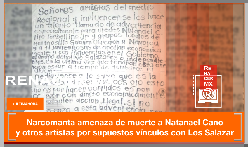 Hermosillo, Sonora – Un mensaje de advertencia firmado por un integrante de los Matasalas, un grupo armado vinculado a Los Chapitos, ha enviado una amenaza directa a varios artistas del género regional mexicano, incluyendo al cantante Natanael Cano.