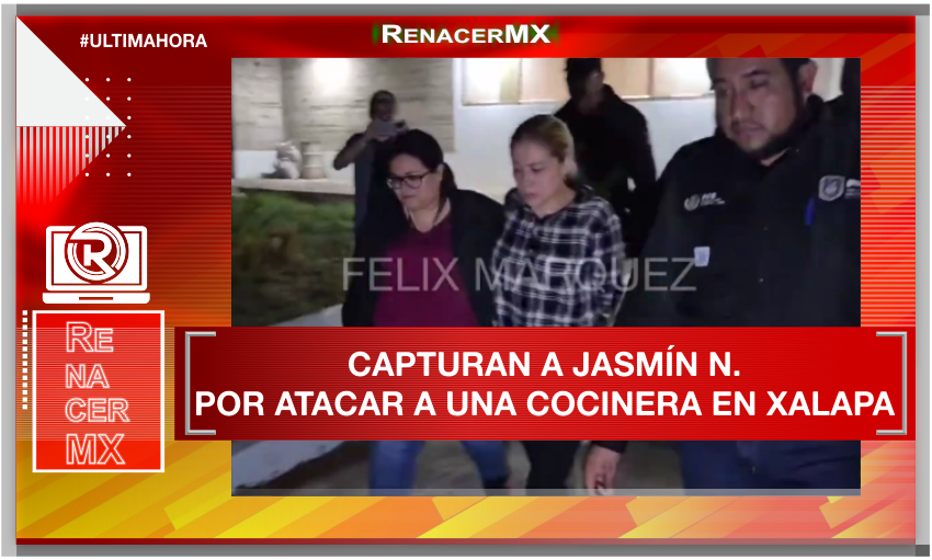 Elementos de la @FGE_Veracruz trasladaron a Jasmín N., quien fue detenida por arrojar un cazo de aceite hirviendo a una cocinera en #Xalapa, #Veracruz.