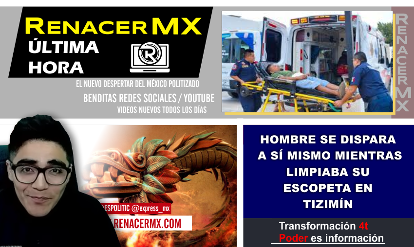 René Ariel D.B., de 35 años de edad, fue llevado de urgencia al hospital San Carlos de Tizimín, luego de que accidentalmente se disparara en el abdomen su escopeta calibre 22, la cual limpiaba mientras se encontraba en su domicilio de la comisaría de Popolnah.